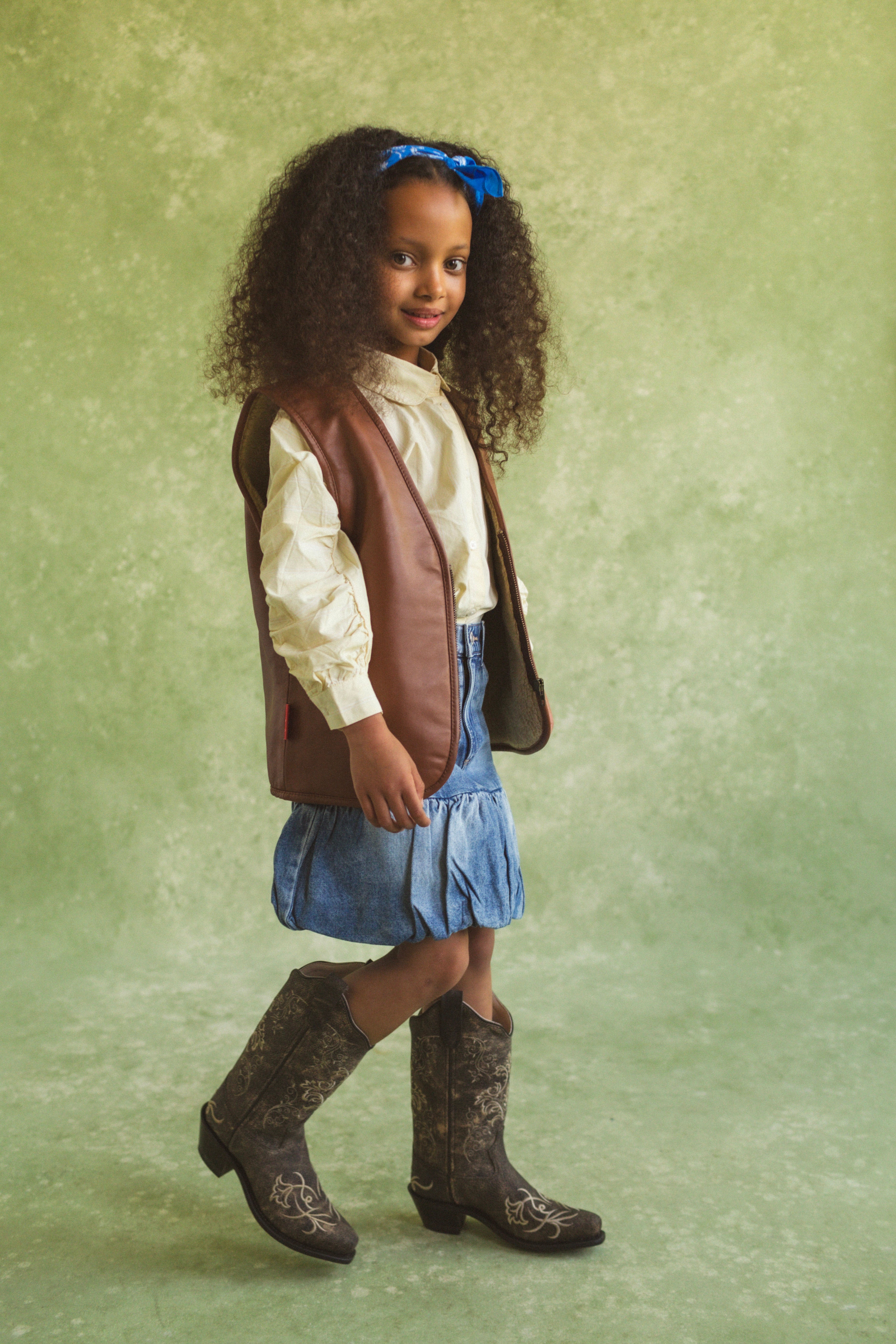 Meet the Fille Garçon Nappa Leather Vest — the ultimate layer for every little rebel. It’s the party piece, the outfit builder, and the finishing touch that makes everything look cooler.