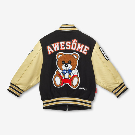 Awesome Letterman Jacket Zip Front Black