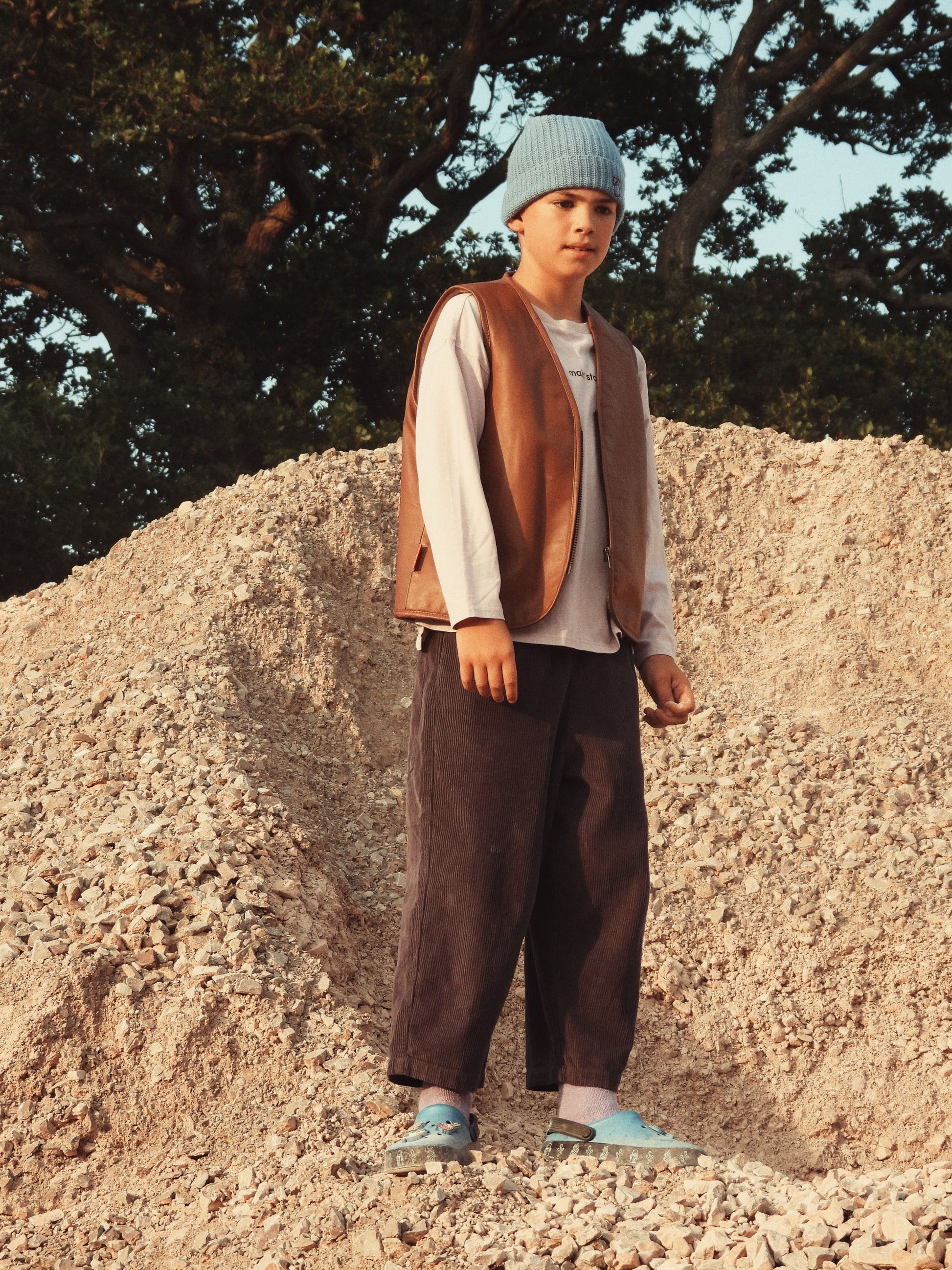 Let your little one channel their inner cowboy with the "Can’t Touch This" cactus vest. This vest is a playful nod to the Wild West, crafted with a premium sheep nappa leather outer for a sleek, durable finish. Featuring a detailed embroidered cactus design, it brings a touch of whimsy to any adventure. The luxurious sheepskin lining ensures warmth and comfort, while the sturdy YKK zipper makes it ready for all their rugged escapades. Perfect for tiny pioneers, this vest is a must-have statement piece for bold little adventurers.