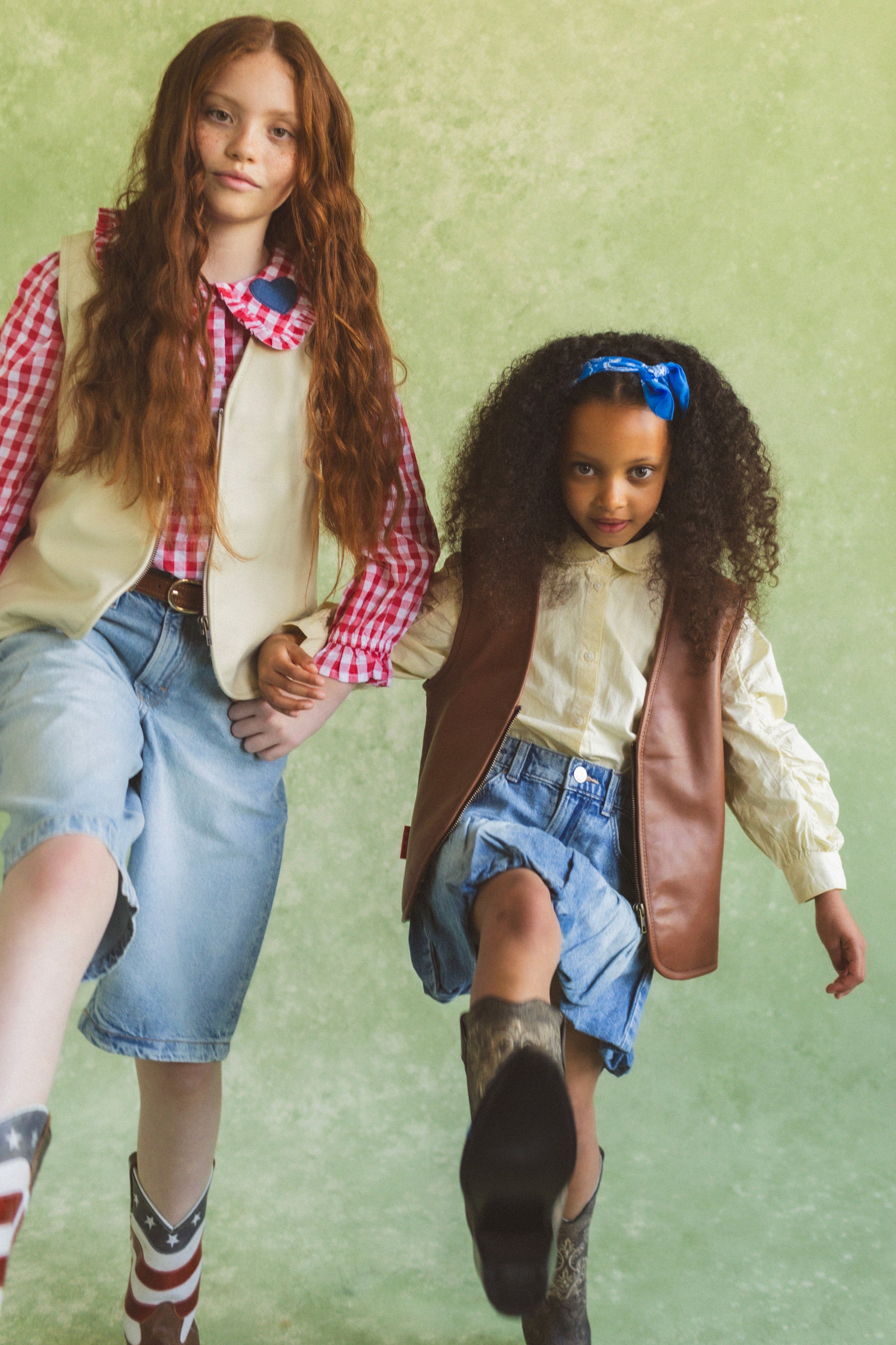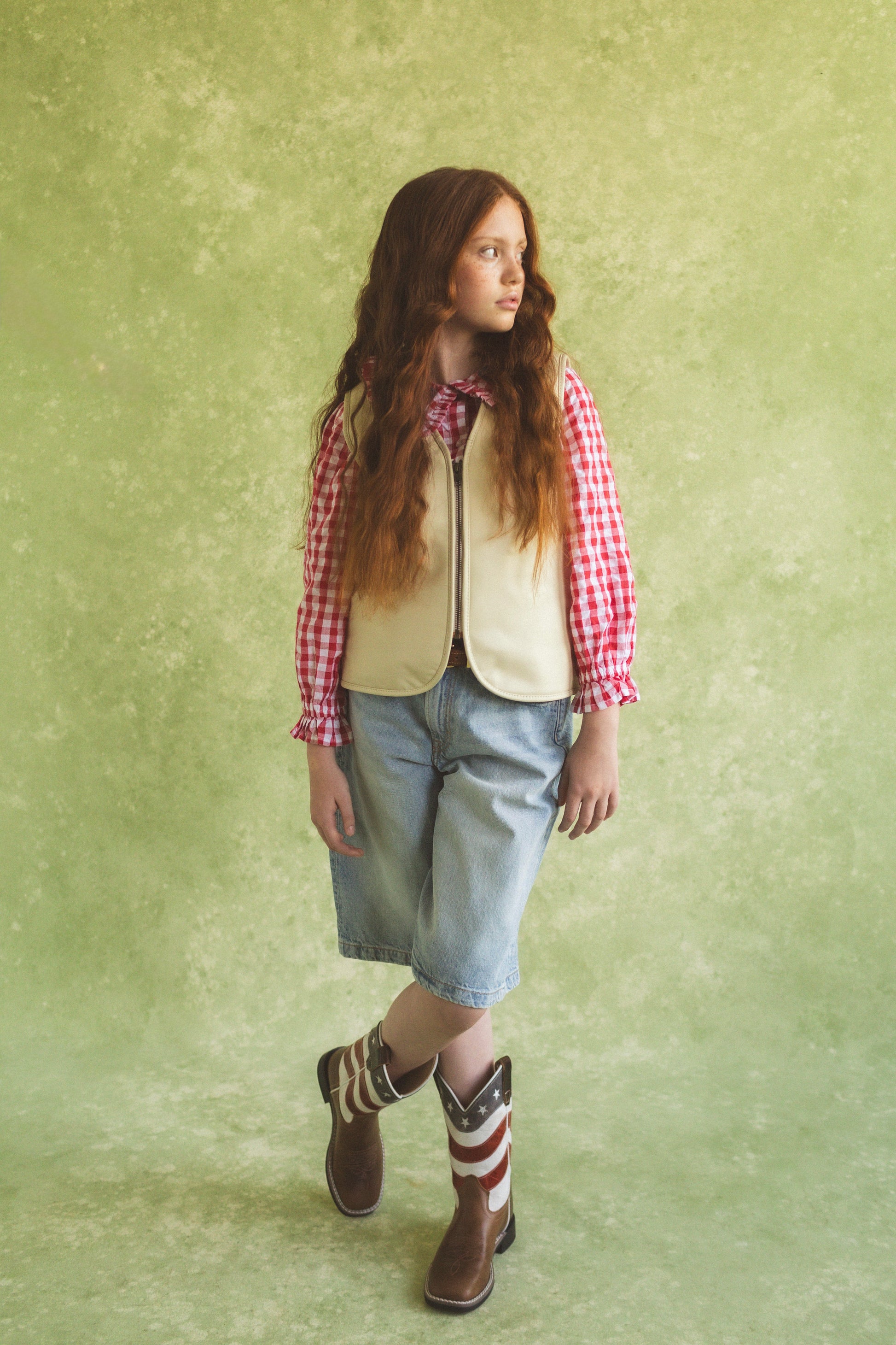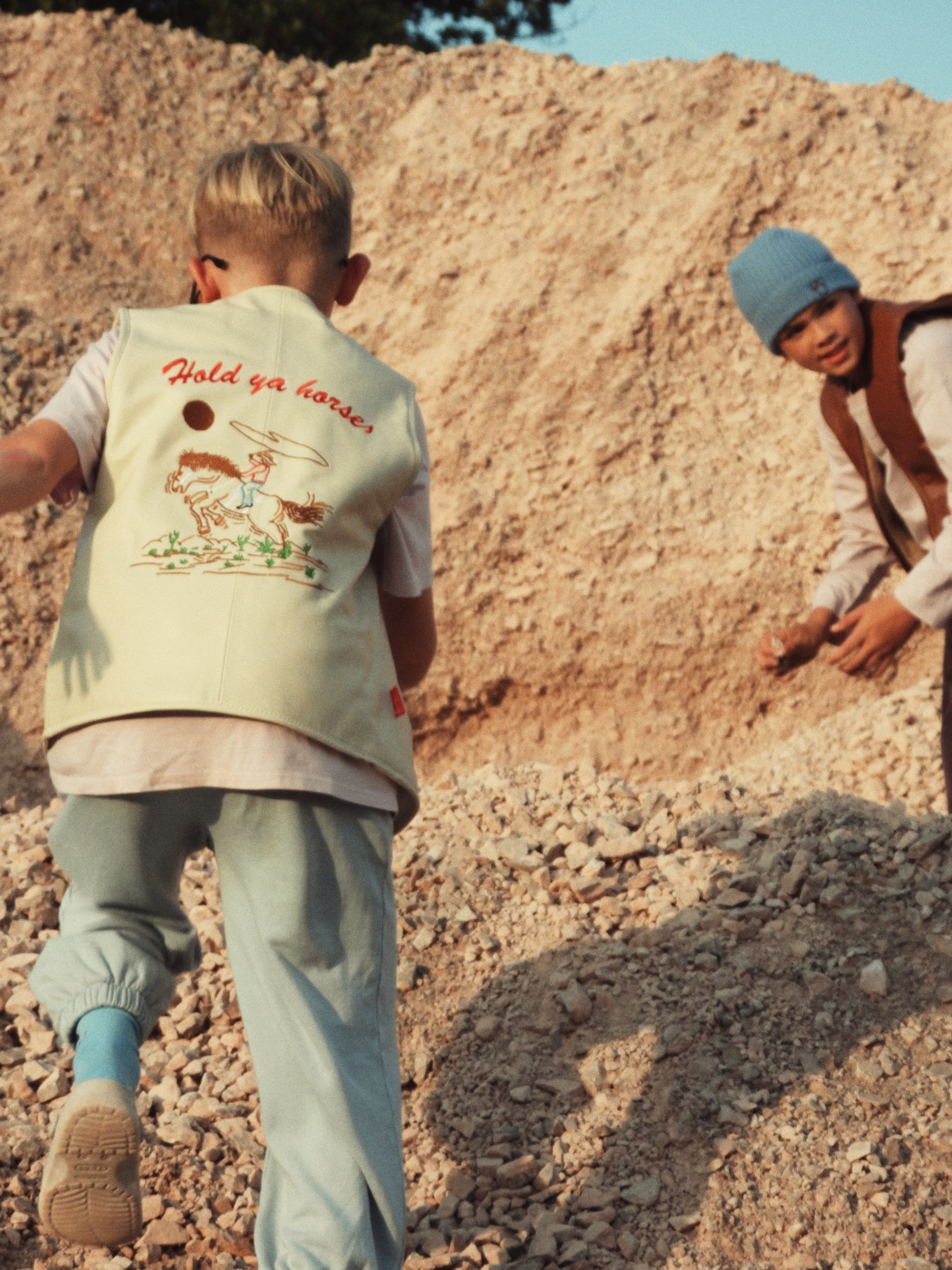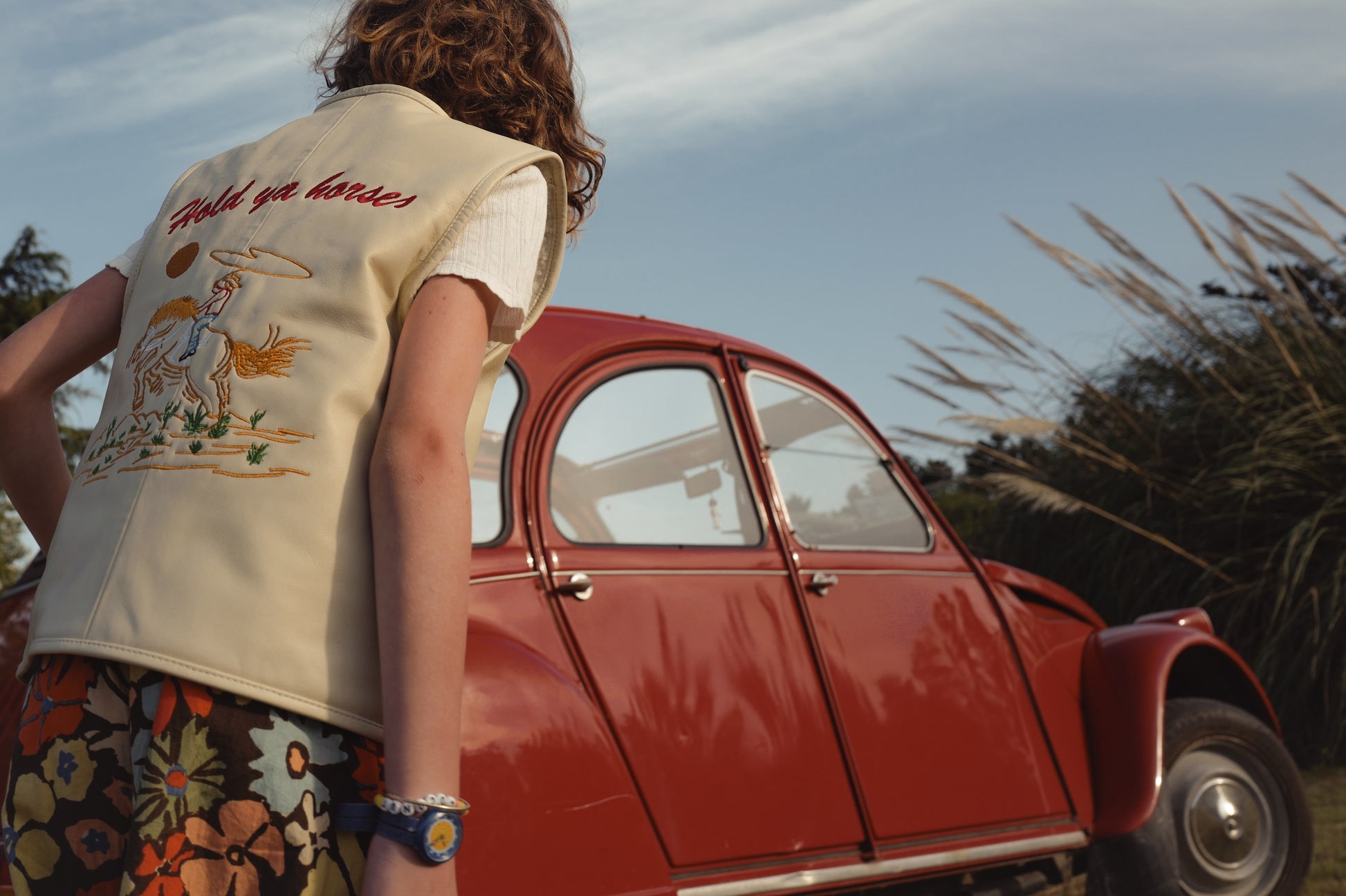Introducing the Cream Leather Nappa Kids Vest – a stylish and durable piece for your little adventurer. Crafted from soft, premium nappa leather, this vest features a stunning Wild Ride horse embroidery that captures the spirit of the wild west. Designed for both comfort and function, it includes a high-quality YKK zipper for easy wear and a cozy sheepskin lining to keep them warm. Whether they're heading to a rodeo or simply embracing their inner cowboy or cowgirl, this vest is the perfect addition to their wardrobe for a ride that's as wild as their imagination.